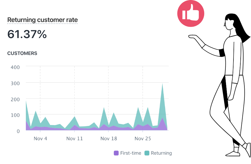 Sağlam temellere dayalı bir büyüme için kullanıcı sadakati ve başarı sürekliliği çok önemlidir. Alışveriş sırasında müşteri ile ilk teması kurduktan sonra mailing, sosyal medya etkileşimi ve bildirim gibi metodlarla iletişimizi sürekli hale getiriyoruz. Bu hatırlatmalar ve iletişim stratejileri ile de yeniden sipariş veren müşteri oranını %61 oranlarına çıkarmış bulunmaktayız.