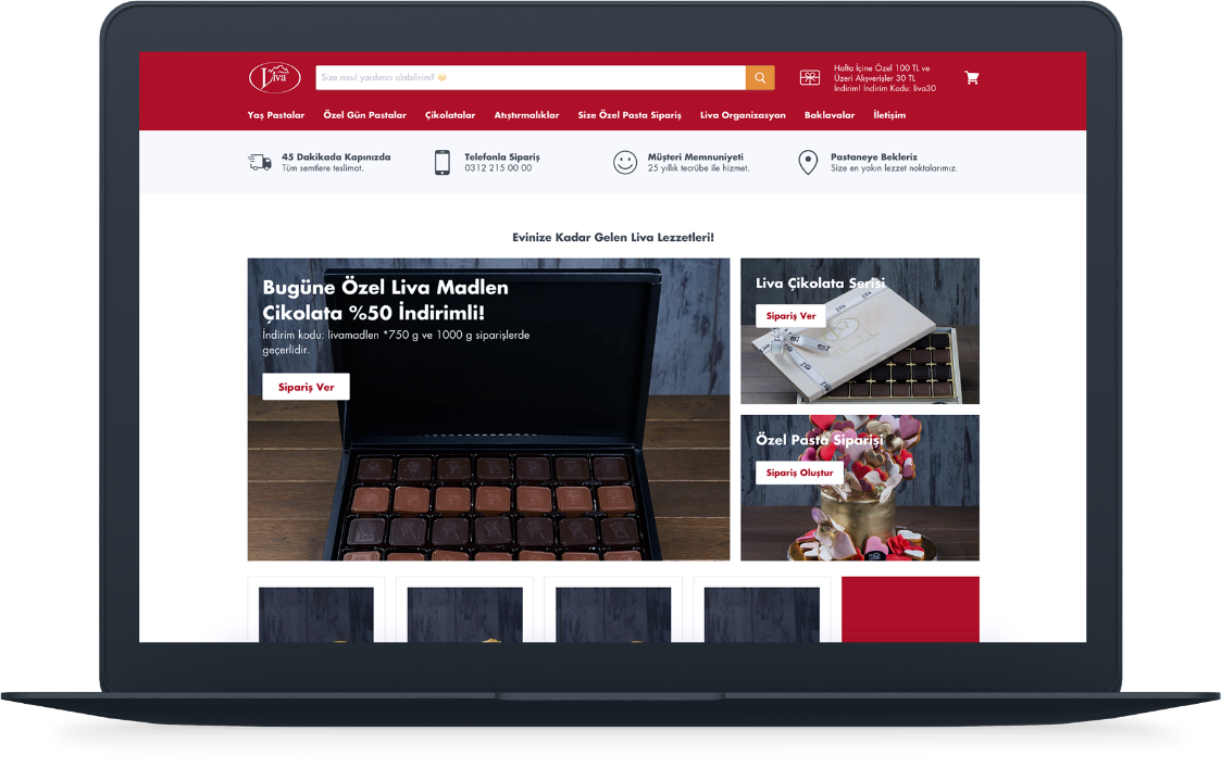 Sıfırdan oluşturulan Liva Pastacılık e-ticaret web sitesi için 2000’den fazla çalışan tarafından sürekli olarak güncellenip geliştirilen Shopify e-ticaret altyapısı tercih edildi.