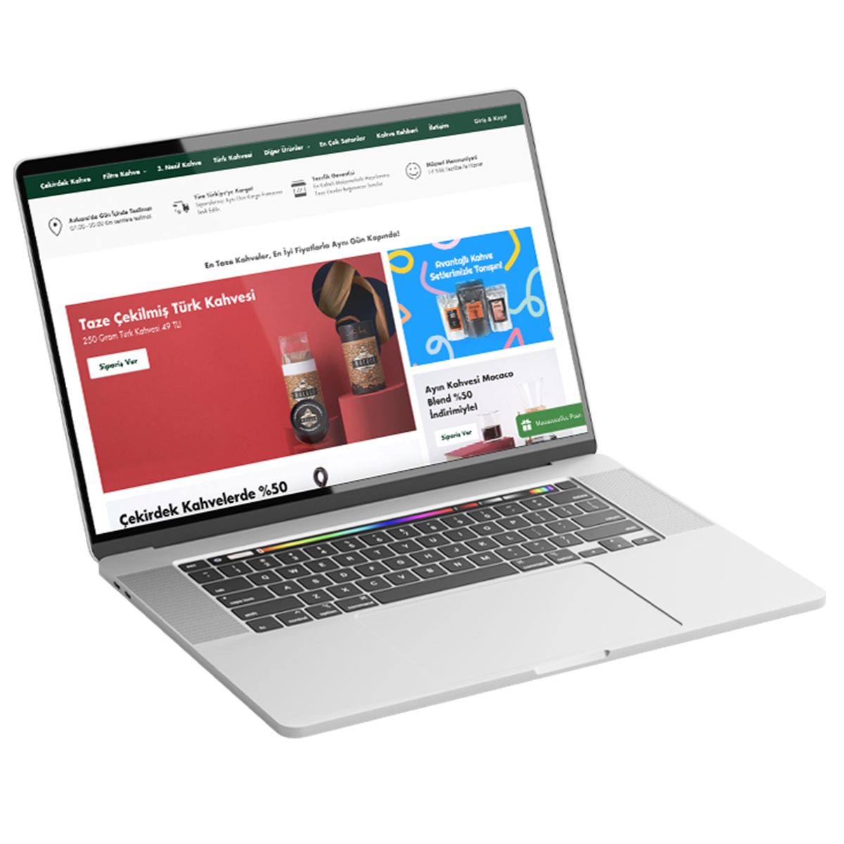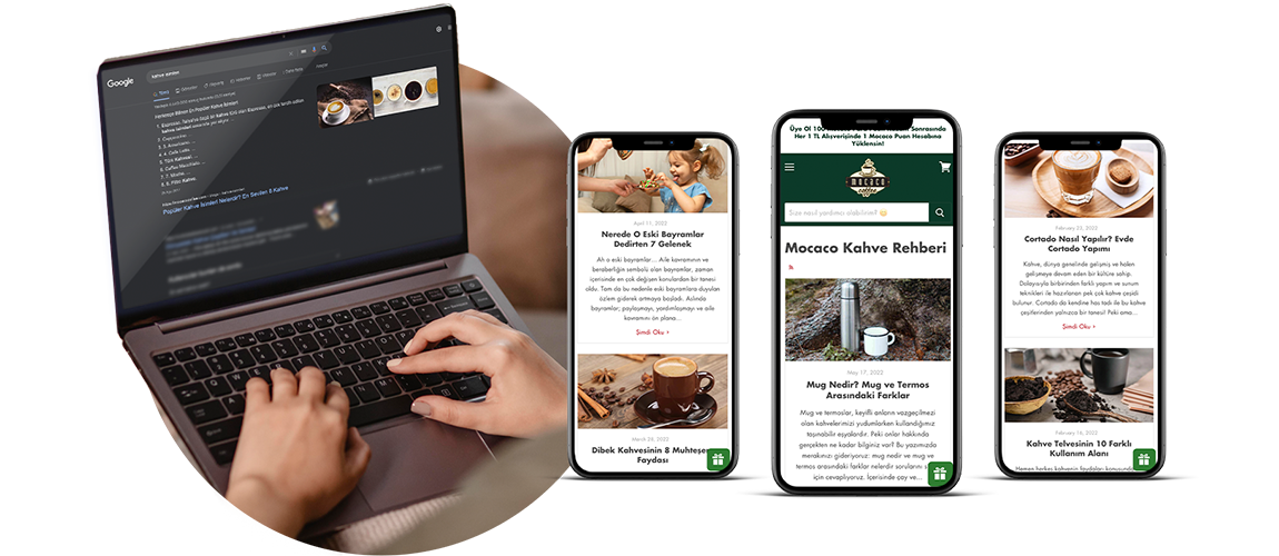 Web geliştirme, dijital danışmanlık ve performans pazarlama ahizmetleri vermekte olduğumuz Mocaco Coffee’nin önce yerelde, sonra ulusalda tanınan ve online kahve satışı alanında fark yaratmaya devam etmesi için çalışmalarımızı sürdürmekteyiz.