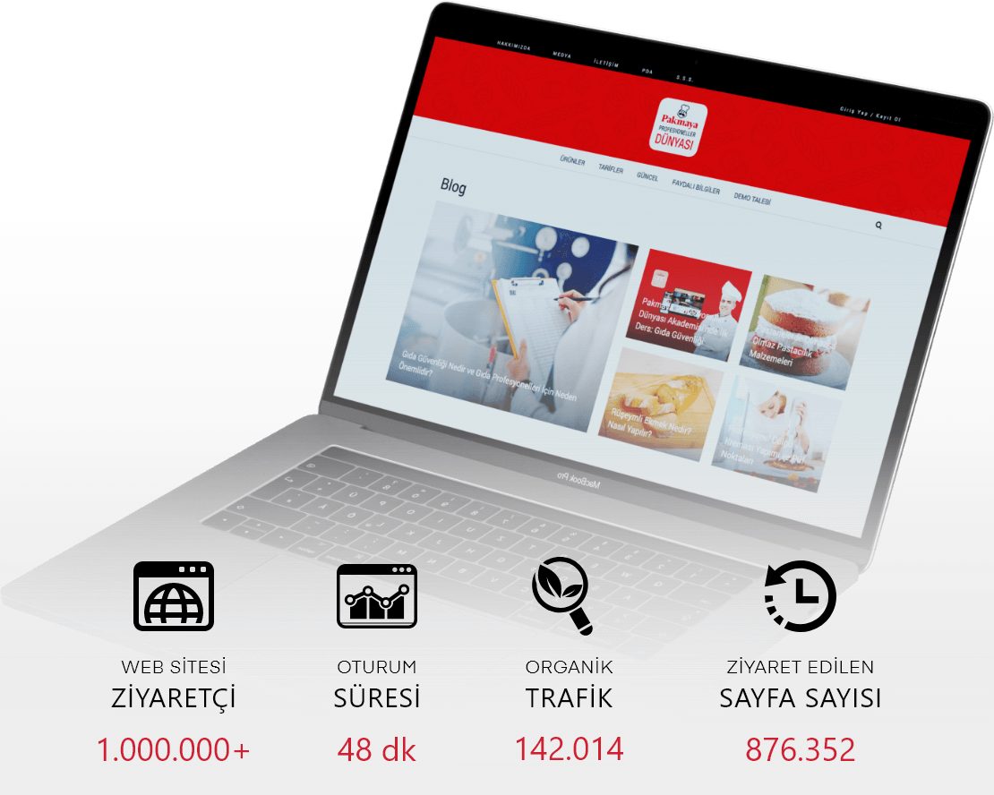 Pakmaya’nın endüstriyel tüketime yönelik ürün grubunu doğru hedef kitleyle buluşturmak ve pasta ve fırın ustalarından oluşan hedef kitlenin “dijital buluşma noktası” platformu olarak konumlanmak için 2018 yılında web sitesini yayına aldık.